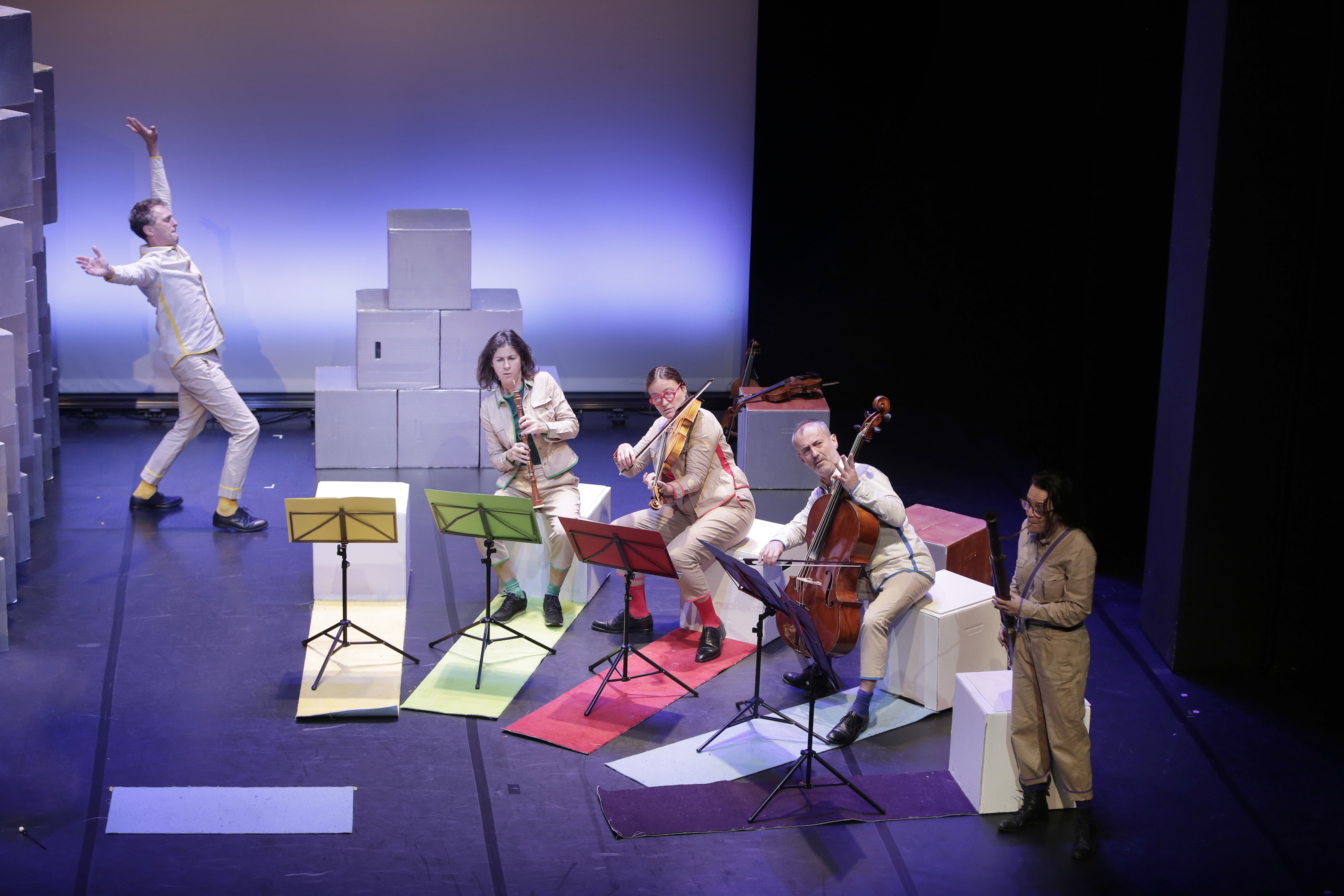 Bartok und Pipp wollen gerade mit ihrem Fitnesskurs beginnen, werden aber immer wieder von seltsamen Geräuschen bei den Nachbarn unterbrochen. Pssst …, hört, hört! Schon bald werden die beiden von einer betörenden Musik, die auf außergewöhnlichen Instrumenten gespielt wird, verzaubert. Die Mauern fallen, das Publikum feiert mit und wird eingeladen, eine wunderbare Welt rund um Wolfgang Amadeus Mozart zu entdecken.